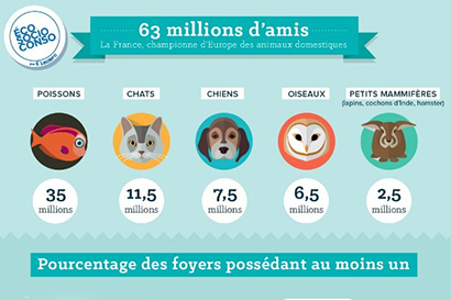 Et oui, comme nous le montre cette jolie infographie, le chat est aujourd’hui l’animal de compagnie préféré en France, devant le chien !